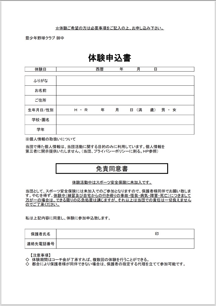 体験参加申込書