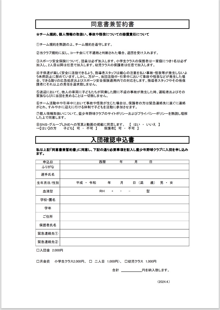 藍少年野球クラブ規約